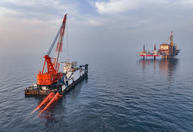 在发展国内海底管道业务的同时,中国海油积极为“一带一路”沿线国家和地区能源发展贡献中国力量。中国海油海油工程安装分公司副总经理宫学成表示,近年以来,公司先后承揽东南亚、中东、非洲等国家和地区的10余个项目,累计铺设海底管道500余公里,创造了全球“海管尺寸最大”和“单根海管最重”等多项行业施工纪录,进一步推动我国海洋工程企业深度参与全球油气合作,为助力当地能源基础设施建设与经济高质量发展提供了中国工程方案。