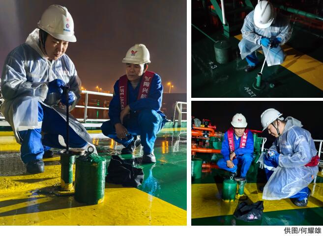 “志哥,油罐计量得抓紧了!”5月2日凌晨1:00,油库计量员刘刚的声音透过淅淅沥沥的雨声传来,电话那头还夹杂着雨滴敲打油船棚顶的轻响。