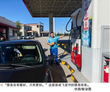 “服务没有最好,只有更好。”这是徐成飞始终坚守的服务信条。每天面对形形色色的客户,他始终保持着热情周到的服务态度,用真诚的微笑和贴心的服务,温暖着每一位过往司乘。他严格执行3声服务法——来有迎声、问有答声、走有送声,已成为乌兰加油站的服务标准。