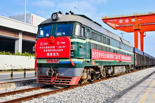 中国石化海南自贸港“二线封关”监管货物铁路出岛班列启程