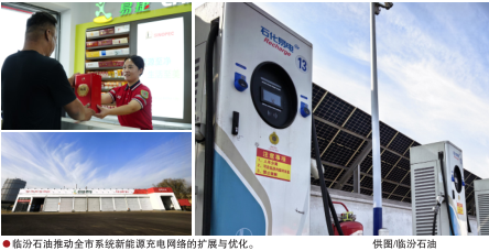 临汾石油以曲沃高显油库站为核心枢纽,打造集加油、重卡充换电、光伏发电、储能调节、易捷服务、汽修养护、司机之家、餐饮休息等多业态于一体的全要素能源枢纽,取得了能源转型和高质量发展的阶段性成果。