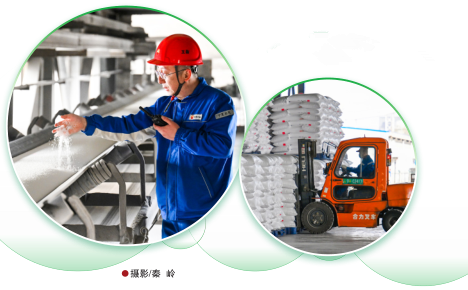 繁忙的成品装车站台:数十辆大货车排成长长的巨龙,司机师傅在车旁与工作人员核对单据,机械手将码放整齐的尿素产品稳稳装入车厢。另一侧的铁路站台,同样是一派繁忙景象:叉车在成品垛与火车皮之间灵活穿梭,迅速将一垛垛尿素放置到车厢内。这些产品将沿着铁路大动脉被运往江苏、安徽、湖北等十几个粮食主产省份。