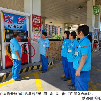 营销工作没有教科书,只有从一线摸爬滚打总结出的“六字真经”。兴海北路加油站提炼出“手、眼、身、法、步、口”服务六字诀:规范手势引导车辆;保持微笑注视客户,用眼神传递真诚;站姿挺拔,工装整洁,展现专业形象;执行标准化服务流程;进退有度,避让车辆,保障安全;使用“您好”“谢谢”“请慢走”等标准话术。