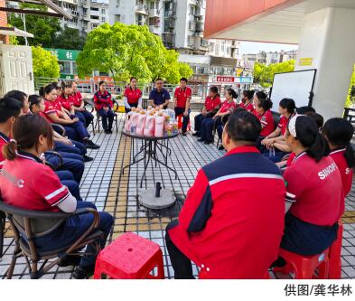 “王先生,您好!您的车辆压缩比适合加98号汽油。98号汽油动力更强,有助于发动机保养。”在唐家湾加能站“爱跑98”专属岛棚前,员工邓燕玲正用“一看二问三推荐”话术向客户推介“爱跑98”。推行“八步工作法”和“一看二问三推荐”话术以来,该站高标号汽油销量同比增长41.3%。