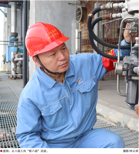 30年前,入职之初,父亲重重地拍着庞刚的肩膀:“干就要干到八级工”,震得20岁的庞刚耳膜发颤。他明白,父亲是希望他做最好的操作工。揣着这句话,他扎进九江石化气化炉的钢铁丛林,在灼热的炉膛前扎下了根。