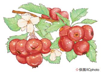 矮矮的树上挂了几十颗绛红色的果子。向上的主枝已经被砍断。长短参差的7根细枝中,有1枝已经枯死,其余6枝挂着三三两两的果实。令人称奇的是,有3根树枝上竟然绽放着山楂花。其中,有6簇绿白色的花蕾,另1簇已经盛开繁密的白花。整个小树从上到下没有一片叶子。